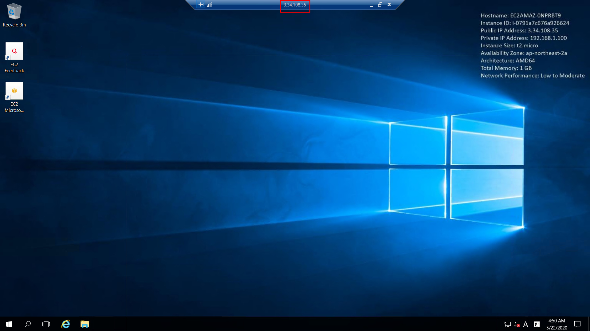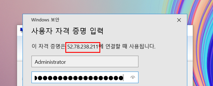 테스트용 인스턴스 생성완료 2. 퍼블릭 IP를 통해 RDP 원격으로 해당 인스턴스에 접속합니다. (인스턴스는 퍼블릭 IP 비활성화로 생성하였고, EIP를 별도로 맵핑해주었습니다.)