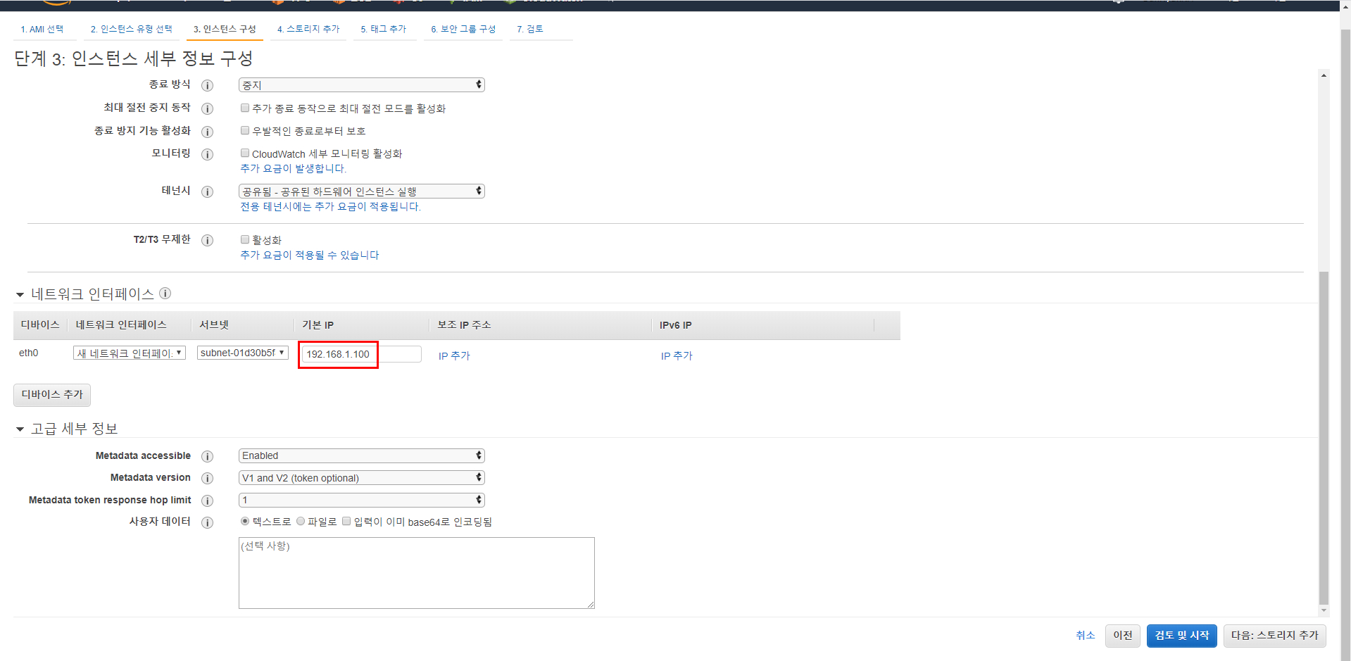 자동 할당이 아닌 고정 IP를 입력