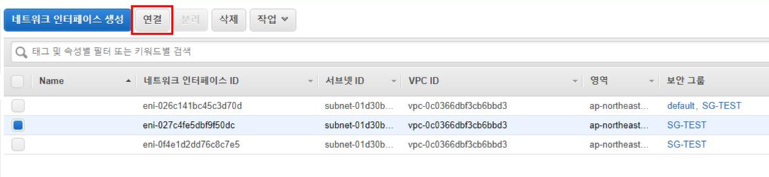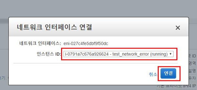 9. 구성을 마친 새로운 네트워크 인터페이스를 네트워크 장애가 발생한 EC2에 Attach 합니다.