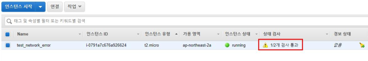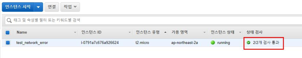 15. 해제 과정을 마치고 해당 인스턴스를 재시작합니다. 상태 검사가 정상인 것을 확인할 수 있습니다.