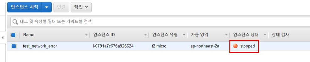 1. 네트워크 오류가 일어난 상황을 연출하기 위해 임의의 Windows 인스턴스를 생성합니다.