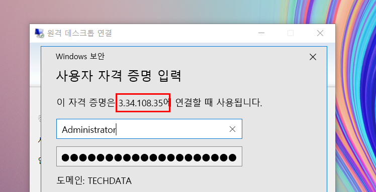 6. RDP 원격접속을 시도하면 오류로 인해 접속이 되지 않습니다.
