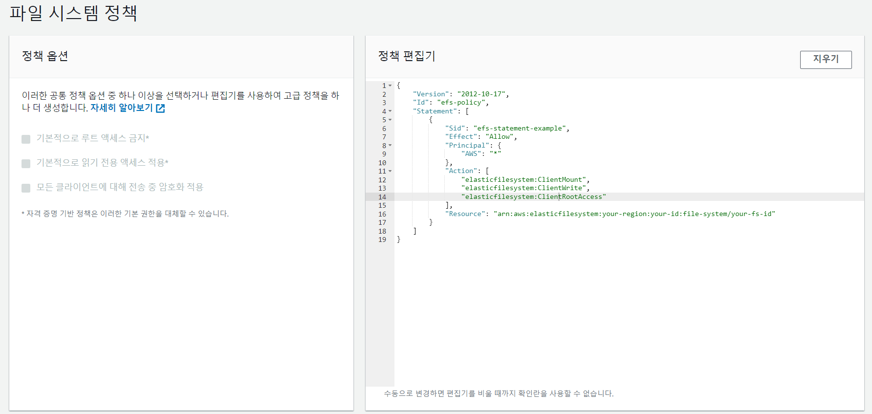 2) 파일 시스템 정책을 추가합니다. (2020-07-21 확인결과 필수사항으로 추가됨)