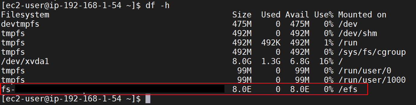 echo $efs_dns:/ /efs efs defaults,_netdev 0 0 >> /etc/fstab!efs_dns가 아닌 efs_id로 작성하면 재부팅시 마운트가 적용되지 않습니다!이제 efs_dns가 아닌 efs_id로 작성해도 재부팅이 가능합니다. (2020-07-21)