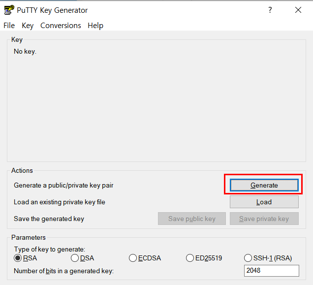 - 설치가 끝나고 난 뒤 PuttyGen을 실행합니다.