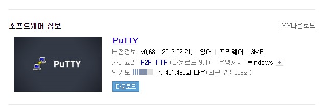 - 네이버에서 'Putty'를 검색하고 설치 파일을 다운로드 합니다.